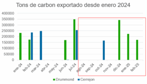 As more than two years have passed since the genocide of more than 60,000 people in Palestine, we can see a direct connection to Colombia. Most of the coal that Israel has received comes from the Colombian subsoil. According to the Ministry of Commerce, in 2023, coal exports to Israel reached US$446.9 million FOB, representing 3 million tons of coal. The largest miners from January to March 2024 are Cerrejón Zona Norte coal (Glencore), with 54.3%, and Drummond with 45.7%. Even so, this only represents a total of 4.2% of Colombian coal exports (2024), demonstrating a low economic impact, compared to its extremely high consequences against human life, and direct complicity in a genocide.
