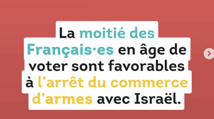 La moitié des Français es en âge de voter sont favorables à l’arrêt du commerce d’armes avec Israël.